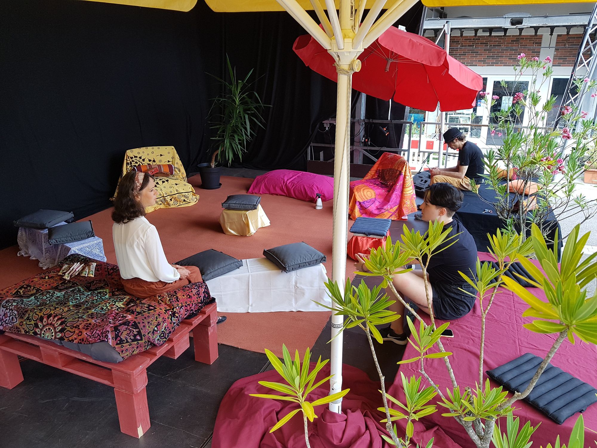 "Geschichten aus dem Koffer" lud Kinder im Sommer 2020 dazu ein, sich in die Welt der Geschichten entführen zu lassen. Das Improvisations-Erzählprojekt, das an den Interessen und Ideen der kleinen Zuhörer*innen ansetzte, fand an einem Tag im Hof der Alten Hackerei sowie auf der liebevoll dekorierten Bühne des open-Air-Festivals statt. Die Teilnehmer:innen erfuhren durch das Zuhören und durch aktives Mitgestalten von Geschichten und Erzählungen künstlerische Teilhabe, Erholung, Ruhe und Spiel. Ein tolles Projekt, das das Programm von "Toujours Kultur!" bereichert hat.