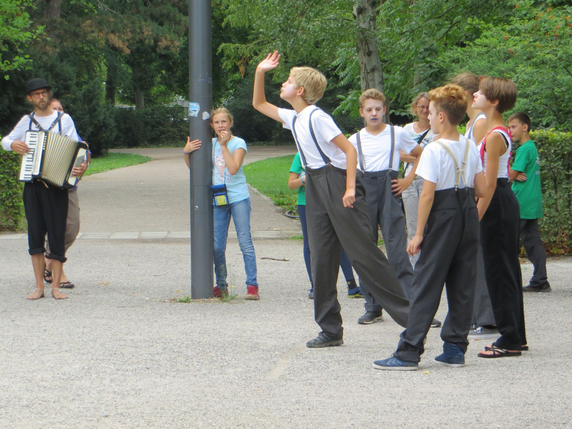 Zirkus und Theater im Zirkel in Kooperation mit Zirkus Maccaroni des StJA e.V. Eine ganz besondere Atmosphäre zauberte das Ferienprojekt Circus Circinus in den Schlosspark und auf die Bühne des KA300- Pavillons. Wie das Räderwerk einer Uhr zirkelte sich die Performance durch den öffentlichen Raum…
