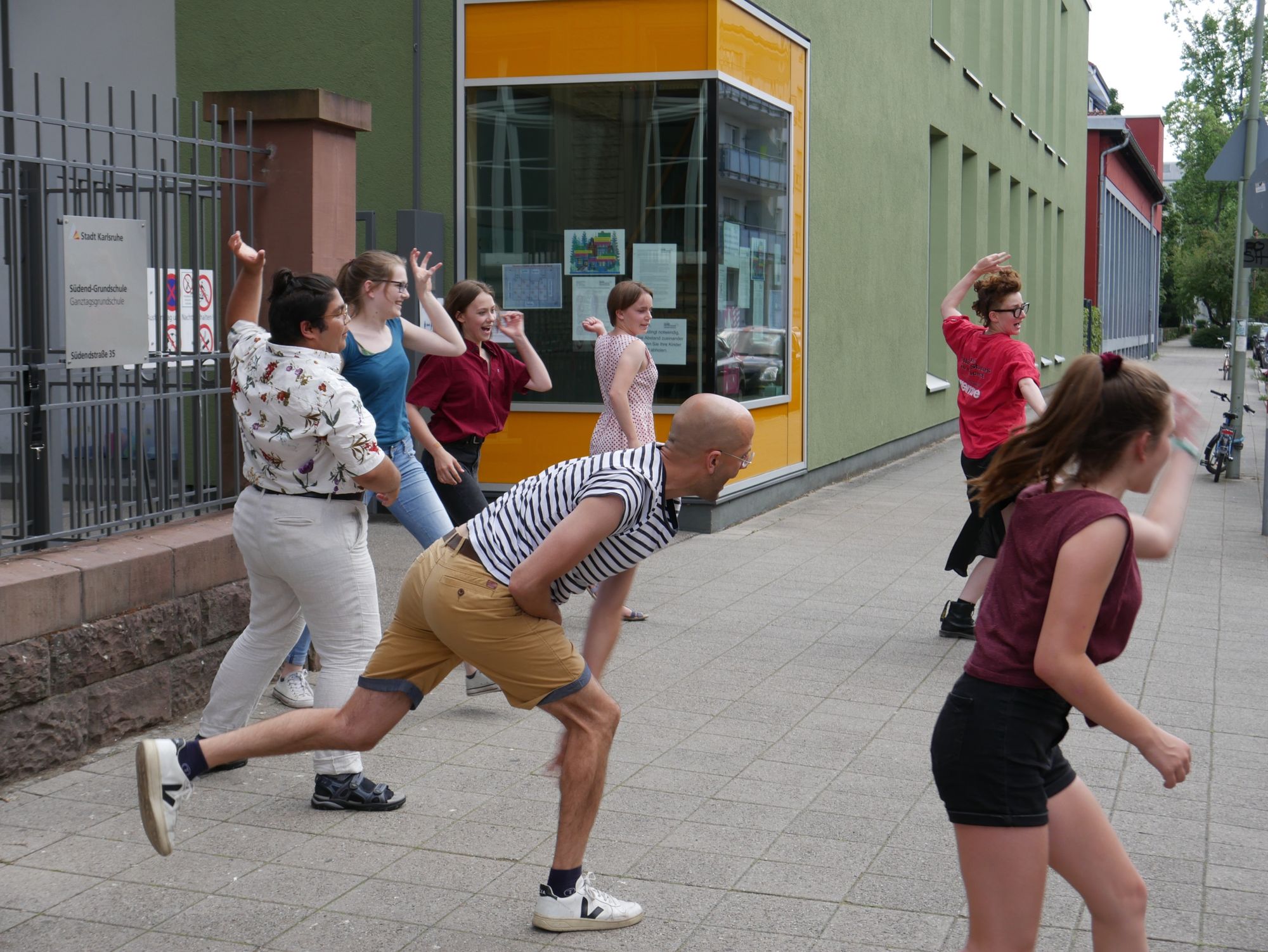 Theatervorstellung im öffentlichen Raum für die Bewohner*innen des Luitgardhaus Karlsruhe von den Teilnehmer*innen des gemeinsamen Theaterspielclubs von Badisches Staatstheater und WERKRAUM: Karlsruhe e.V. Die Stadtraumpionier*innen spielten für die Bewohner*innen des Luitgardhaus, einem Wohnheim…