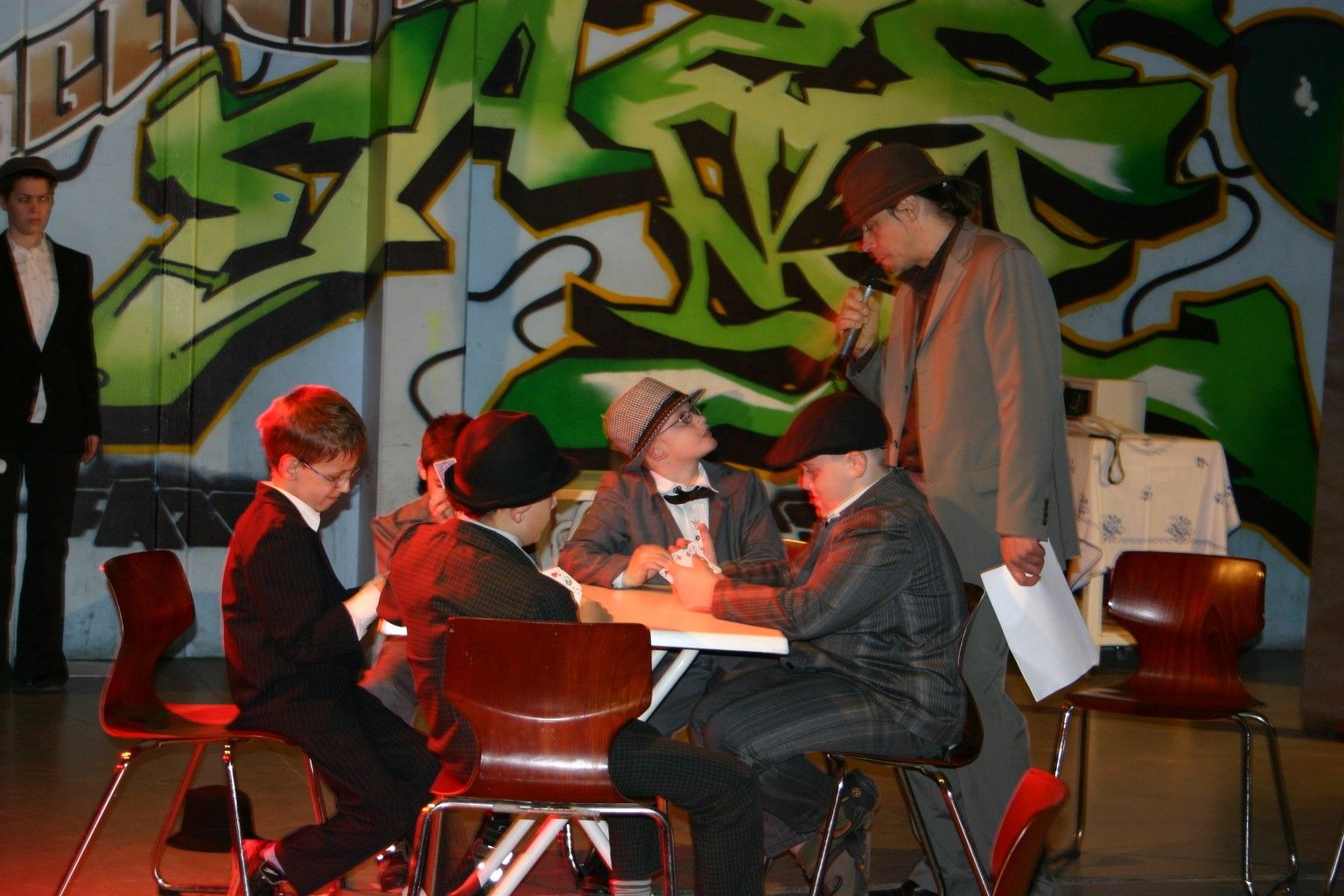 Theaterprojekt mit geistig behinderten Jugendlichen nach einer Vorlage von Raymond Chandler in Kooperation mit der Gartenschule Ettlingen und dem Kunstkreis Karlsdorf-Neuthard e.V. “Es geht darum, ihnen dabei zu helfen, die echten Regisseure ihres Lebens zu werden, das sie führen wollen.” (Mannomi…